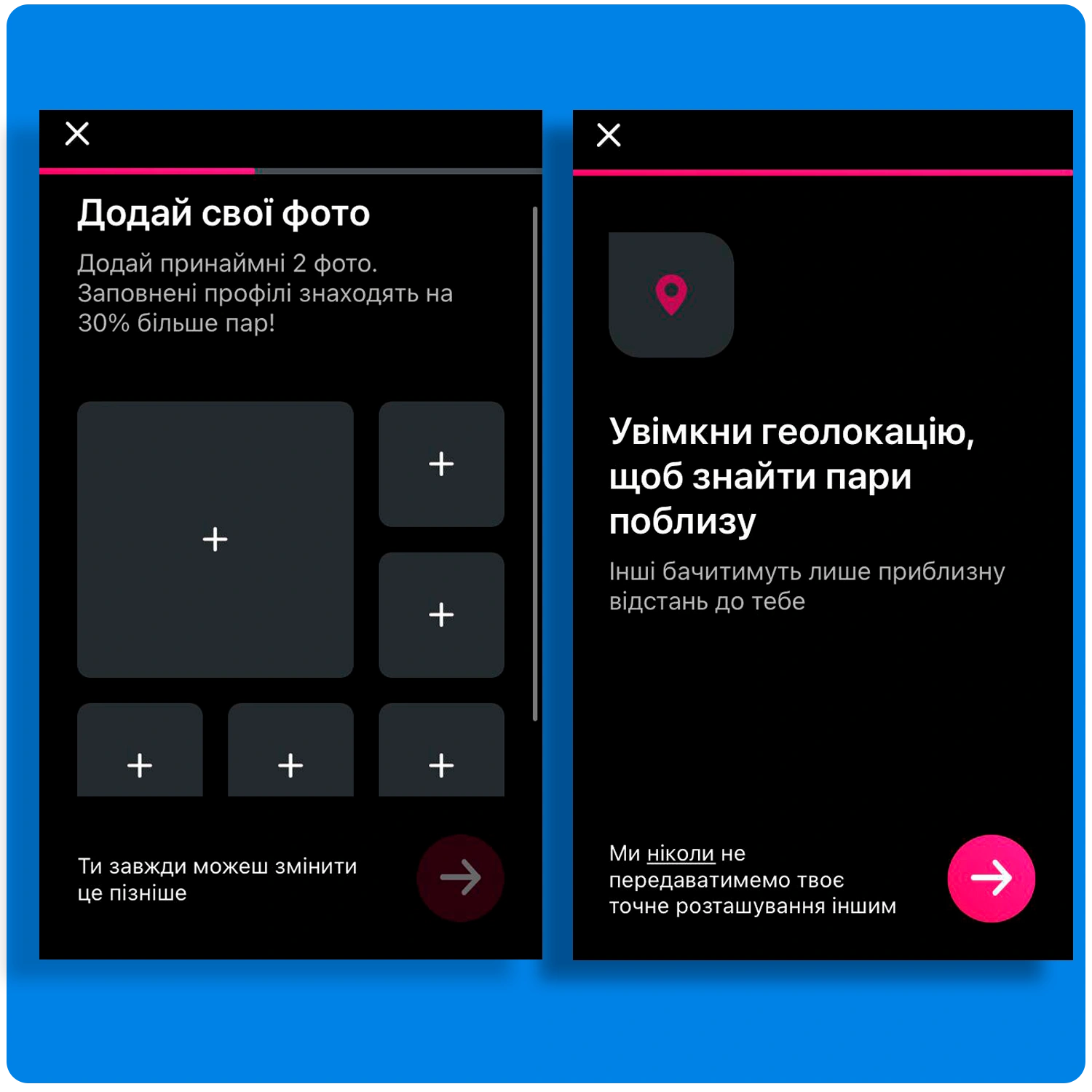 Також потрібно додати кілька фото та увімкнути геолокацію. Для підміни геолокації можна використовувати застосунки на кшталт iPogo GPS Spoofer, AnyTo, XCode, або джейлбрейк на iPhone.